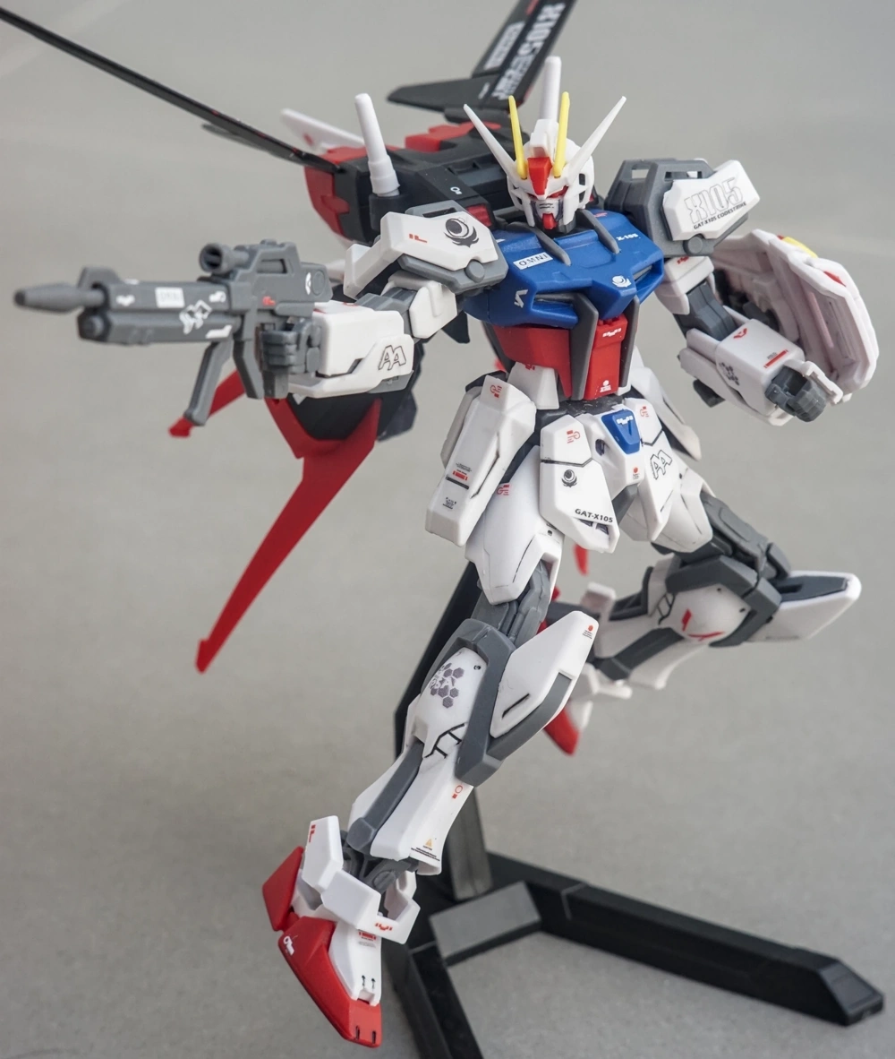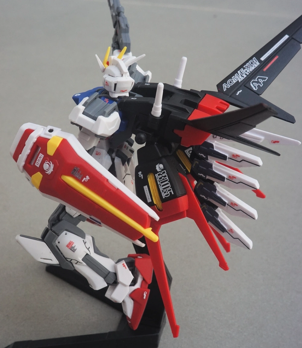 While at a glance the bootleg Gunpla looks fine, it looks very plain out of the box. But to be fair, that’s on Bandai, as bootleg manufacturers simply copy (and sometimes modify) Bandai kits. Entry Grade Aile Strike actually has excellent colour accuracy for its price without relying on stickers. See how plain it is: